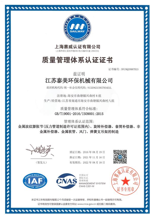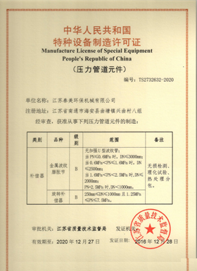江蘇泰美環保機械有限公司專業生產金屬波紋管膨脹節、不銹鋼金屬軟管、非金屬耐高溫織物補償器、脫硫擋板門、彈簧支吊架、環保機械、水泥機械、建材機械等產品,是目前國內規模較大的自主研制和技術開發能力的現代化企業。